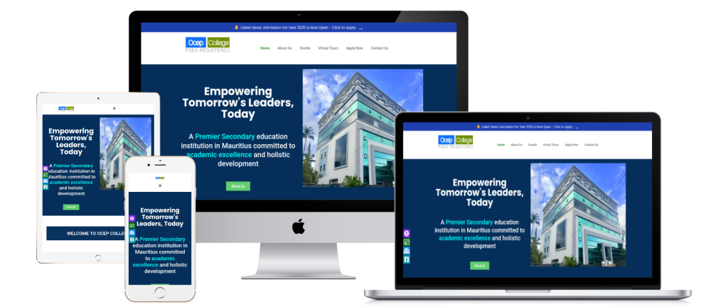 OUR WORK Showcasing Our Digital Excellence Explore our portfolio of some of our projects that have helped Mauritian businesses thrive online. OCEP Training Institute LogiDeals Worldlink Ltd NK Taher Co Ltd Ocep College Ltd Federation University Ocep College Ltd Ready to Start Your Project? Let's discuss how we can create something amazing for your business. GET IN TOUCH